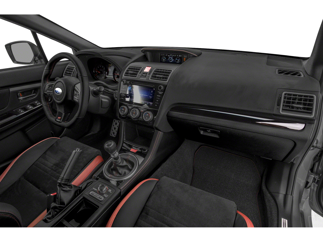 - Butacas delanteras con calefacción con diseño de alto rendimiento -incluye: asiento con ajustes de altura para conductor, cabeceras con ajustes de altura e inclinación con logo STI en relieve y función de protección contra latigazo cervical