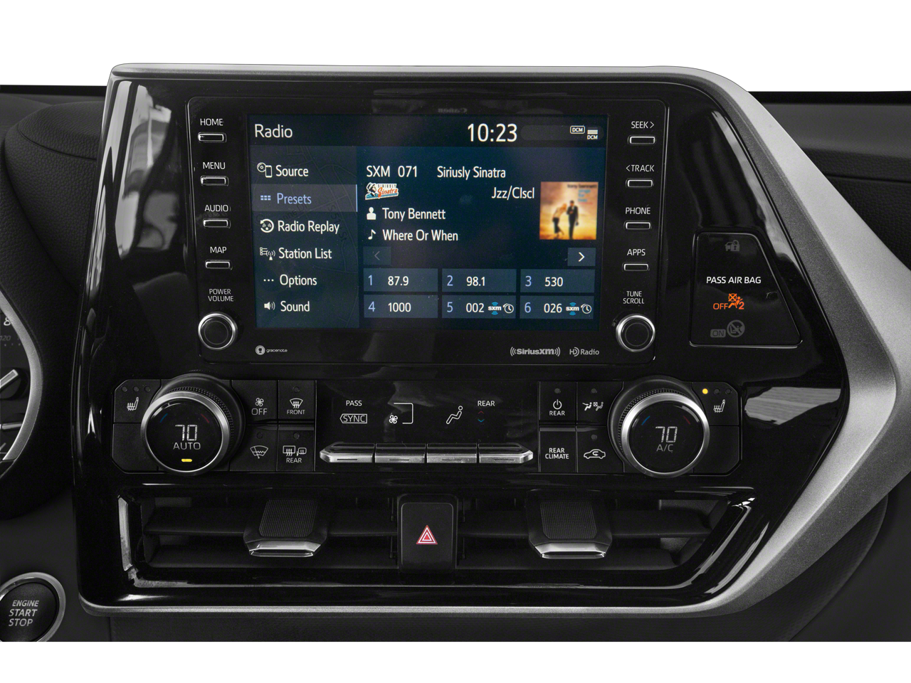 - Radio: Audio Plus -incluye: 6 altavoces, pantalla táctil de 8 plg, radio HD, entrada USB para multimedios, soporte para teléfono a manos libres, sistema avanzado de reconocimiento de voz y difusión de música mediante tecnología inalámbrica Bluetooth, Android Auto, compatible con Apple CarPlay y Alexa de Amazon, SiriusXM con 3 meses de prueba del servicio All Access, servicios Connected - Safety Connect con 1 año de prueba, Service Connect con 10 años de prueba, Remote Connect con un año de prueba y Wi-Fi Connect con hasta 2 GB dentro de los 3 meses de prueba, visite Toyota.com/audio-multimedia para más detalles,