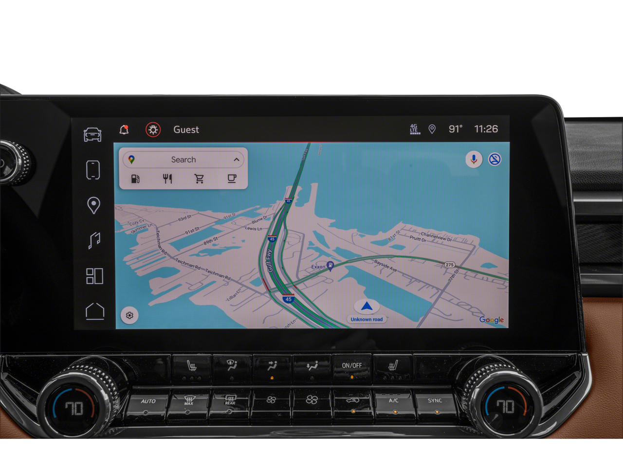 - Sistema de infoentretenimiento GMC premium de 11.3 plg en diagonal con Google integrado, incluye pantalla táctil a color, pantalla multitáctil, AM/FM estéreo, difusión de audio mediante Bluetooth para música y la mayoría de los teléfonos; con compatibilidad para Android Auto inalámbrico y CarPlay de Apple en teléfonos compatibles, aplicaciones en el vehículo con sistema avanzado de reconocimiento de voz y perfiles personalizados para sistema de infoentretenimiento y ajustes del vehículo